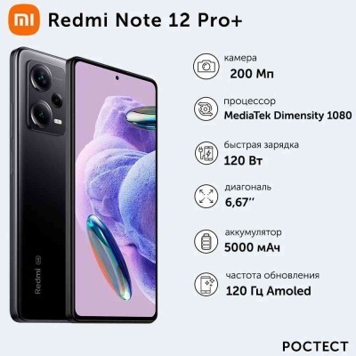 первая страница > Электроника > Смартфон Xiaomi Redmi Note 12 Pro+ 8/256 ГБ, черный